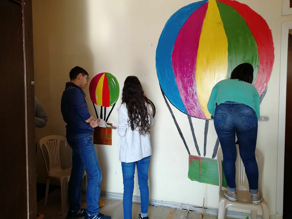 الحيطان ببيت الرحمة الإلهية كفرمسحون نطرشت وتلونت بأجمل الرسومات على إيدين تلاميذ مدرسة