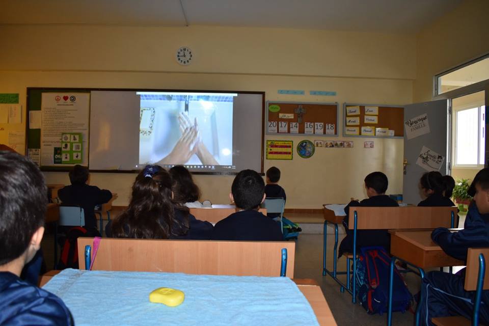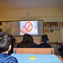 Ils ont visionné avant tout une séquence de vidéo sur l'hygiène des mains, ils ont discuté avec l'enseignante, ensuite ils sont passés à l'application.
