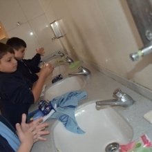 Le mardi 16 janvier 2018, les élèves de EB2 ont appris, dans le cadre des sciences, à bien se laver les mains.