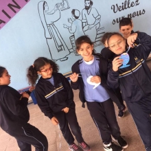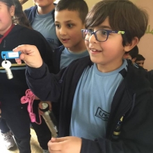 Aujourd'hui, lundi 1er avril 2019, Madame Wadad nous a joué un tour. Elle a caché discrètement la clé de la classe de EB2 A dans la poche de clarita.