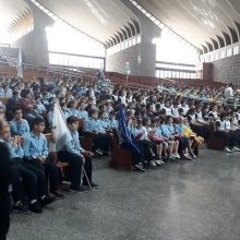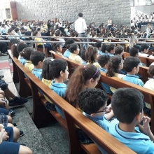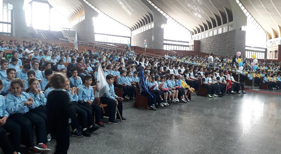 Our students pray for the rosary with the children of the other schools for the peace of our church