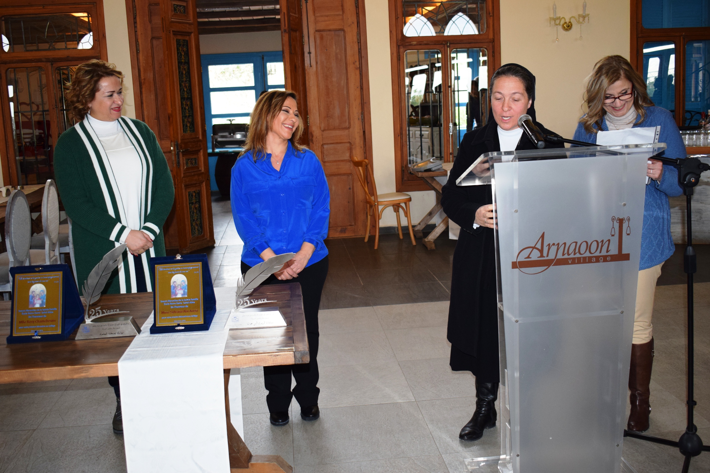 La première étape était l'Église St Antoine, suivie d'une visite guidée au musée NABU, puis le bus a pris le cap direction village Arnaoun, où direction, professeurs et comité des parents se sont retrouvés. La direction ainsi que le comité des professeurs ont rendu hommage aux enseignants qui ont consacré 25 années de leur vie au service du CND en leur remettant des trophées.