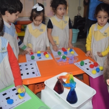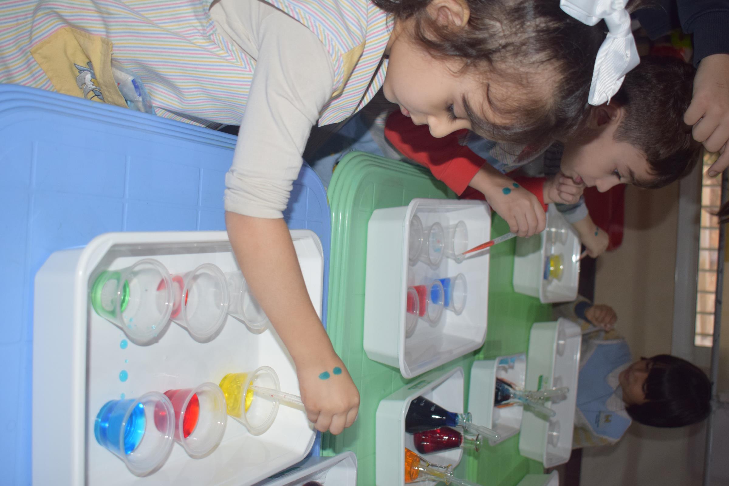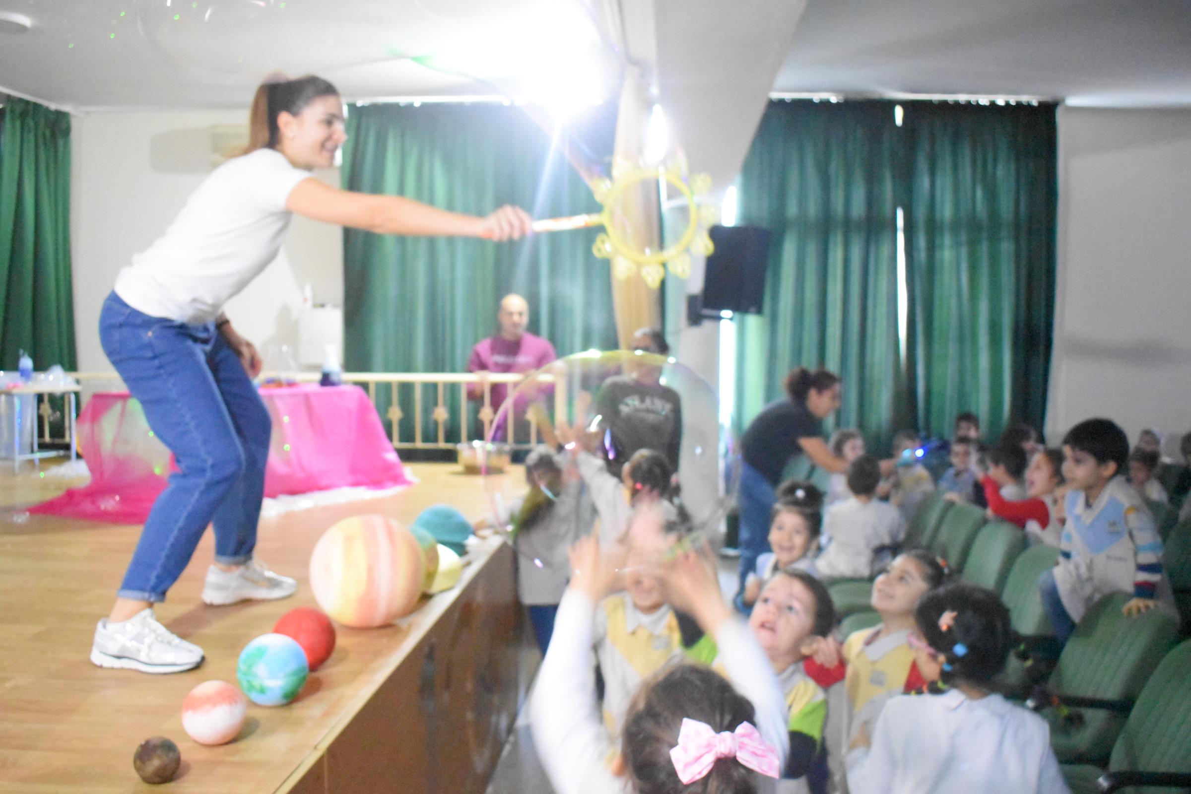 Par la suite, les classes de PS3, EB1 et EB2 ont été réparties en demi-groupes, une symphonie d'apprentissage en mouvement, afin de mettre en pratique les concepts éblouissants présentés lors du spectacle. Les ateliers ont exploré des thèmes envoûtants tels que l'espace infini, le ballet du cycle de l'eau, la magie du mélange des couleurs et les mystères des propriétés du savon.