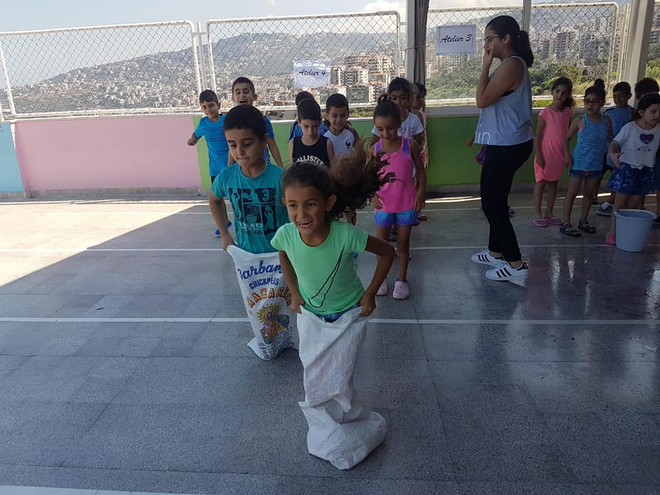 Les six classes du cycle étaient réparties en demi-groupes de 14 élèves chacun, accompagnés d'une maîtresse. Chaque groupe devrait passer dans 11 ateliers organisés par les maîtresses, des maîtresses-assistantes du préscolaire et des jeunes du mouvement Jeunesse St Maron.