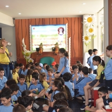 La pièce était éducative avec un décor attrayant. A la fin de la pièce qui les acteurs sont passés parmi les élèves pour prendre des photos avec eux.