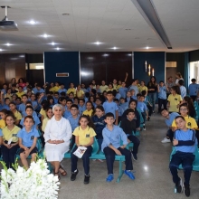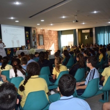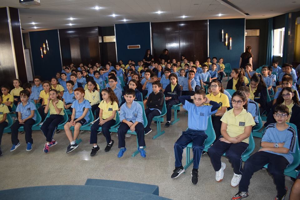 En direct de la salle bleue avec tous les élèves du cycle primaire II qui assistent à une conférence