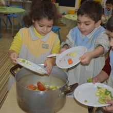 Pour faire une soupe à l'école, il faut apprendre à lire la recette, après le travail commence !