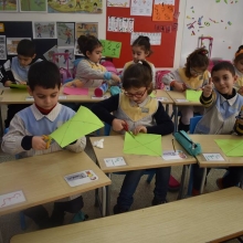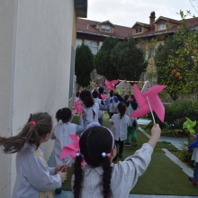 Les PS3 ont profité du beau temps; ils ont confectionné un moulin à vent et se sont amusés ensemble à le faire tourner.