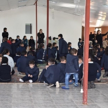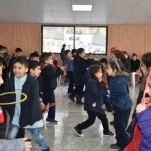 Ils ont partagé avec eux manaïches et jus, ils leur ont offert les friandises collectées et dans l’amphithéâtre ils ont participé à des jeux organisés par les maîtresses.