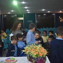 A la fin elle nous a distribué des pommes bien lavées et des concombres avec des carottes qu'elle a présentées d'une façon artistique.