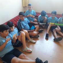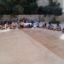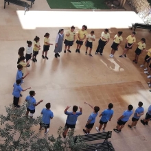La semaine passée, les élèves de la EB5 et EB6 se sont rassemblés à la cour où ils ont appris le chant dédié à Ste Thérèse : "tari2 zghir w7obb kbir ".