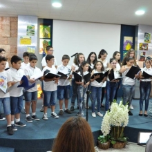 La chorale de l’école formée d’une vingtaine de membres a chanté un cocktail bien choisi et varié de chansons folkloriques.