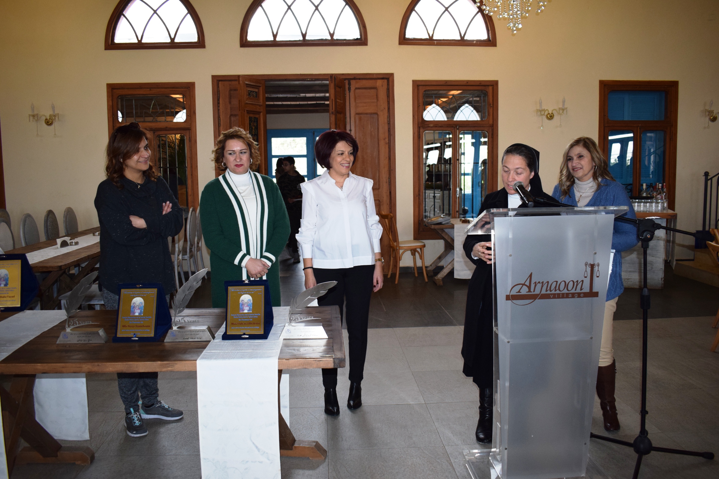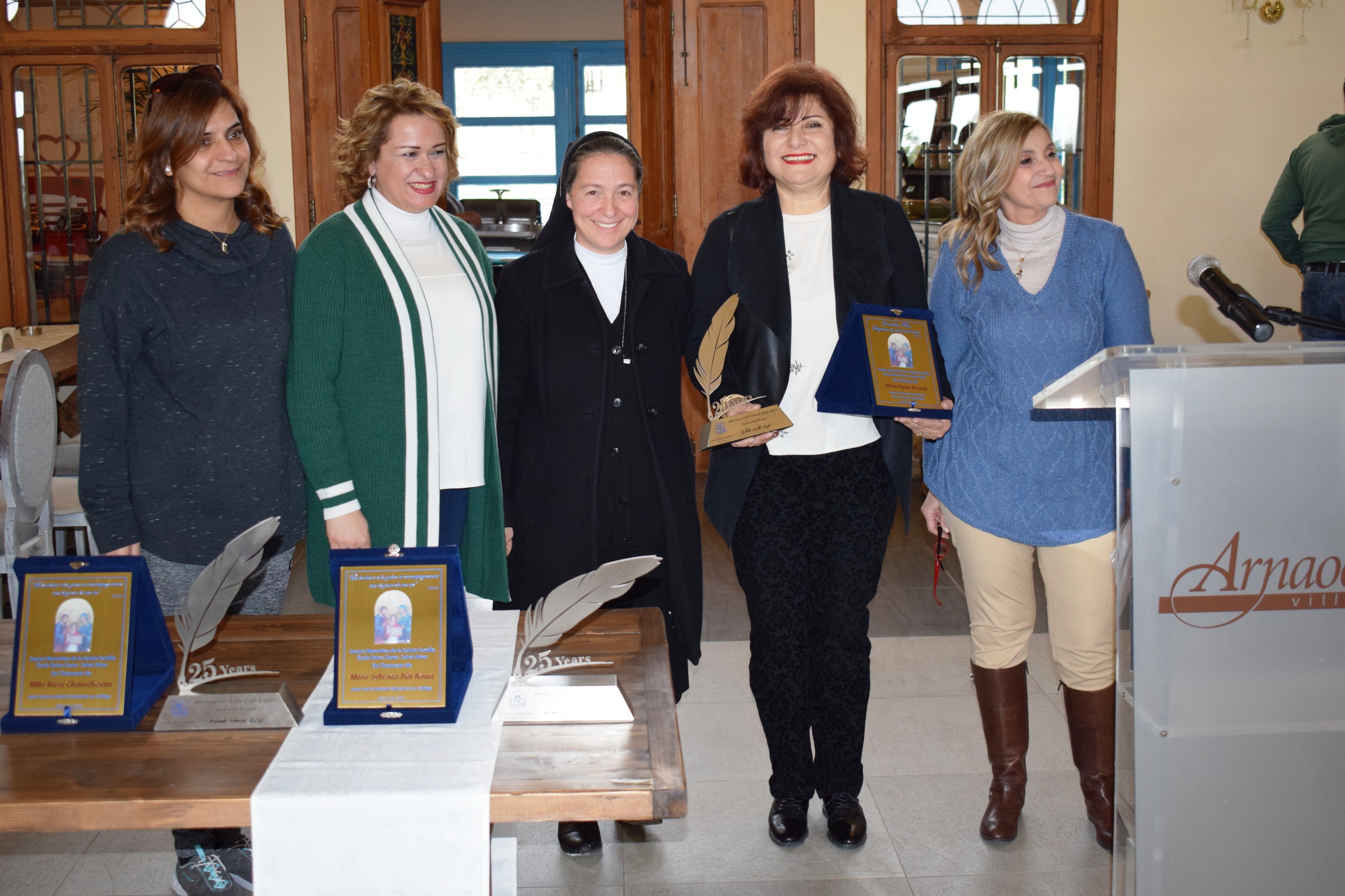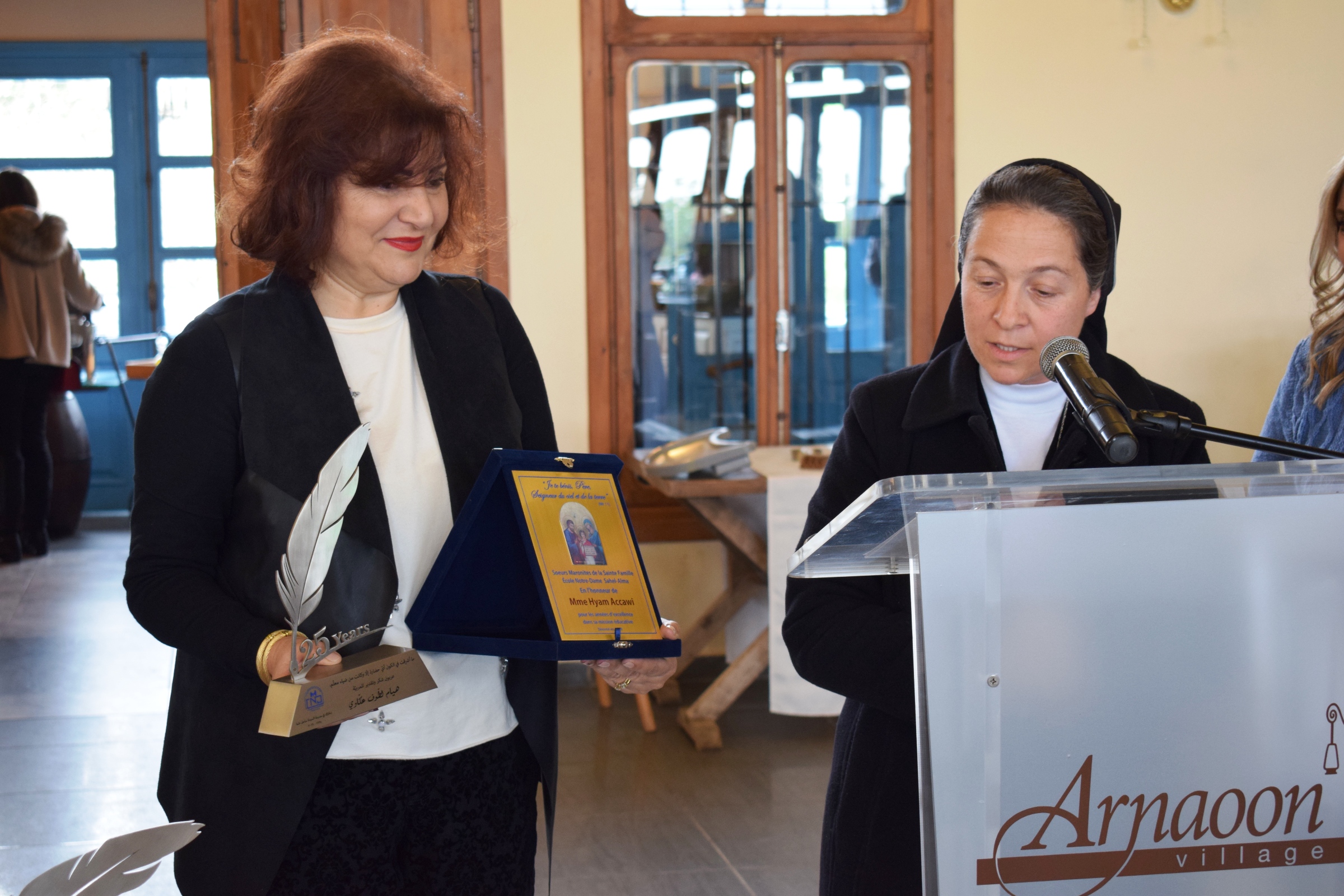 La première étape était l'Église St Antoine, suivie d'une visite guidée au musée NABU, puis le bus a pris le cap direction village Arnaoun, où direction, professeurs et comité des parents se sont retrouvés. La direction ainsi que le comité des professeurs ont rendu hommage aux enseignants qui ont consacré 25 années de leur vie au service du CND en leur remettant des trophées.