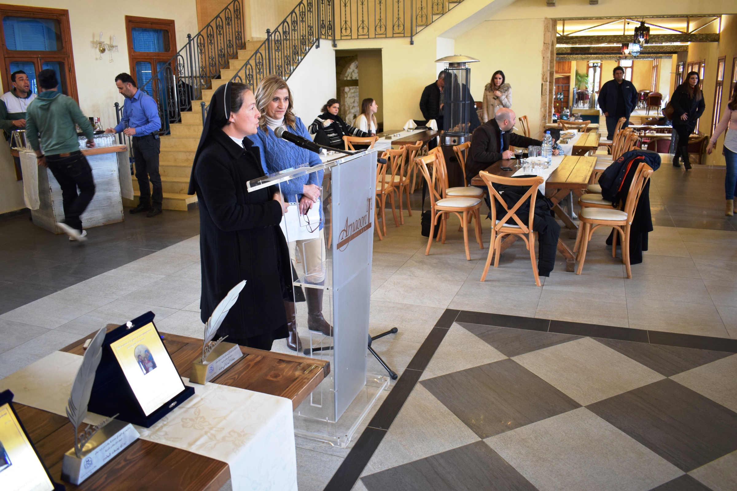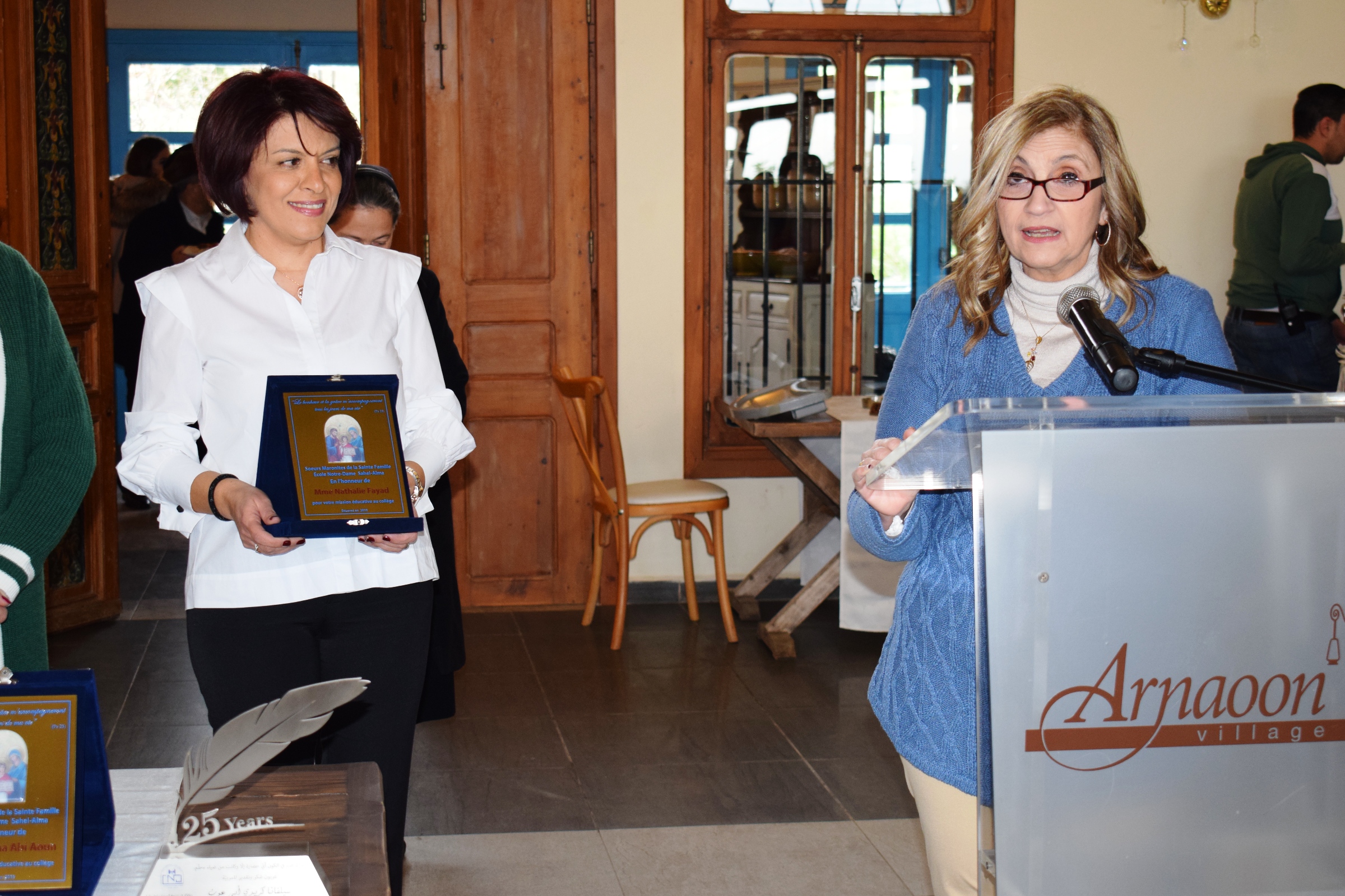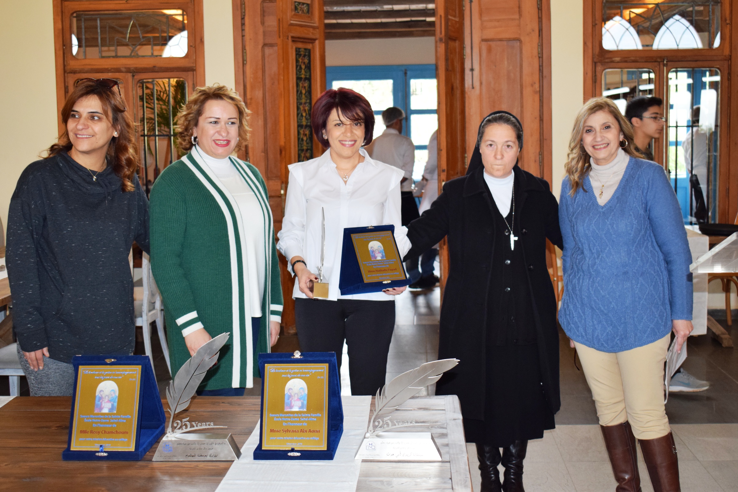 La première étape était l'Église St Antoine, suivie d'une visite guidée au musée NABU, puis le bus a pris le cap direction village Arnaoun, où direction, professeurs et comité des parents se sont retrouvés. La direction ainsi que le comité des professeurs ont rendu hommage aux enseignants qui ont consacré 25 années de leur vie au service du CND en leur remettant des trophées.