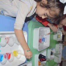 Par la suite, les classes de PS3, EB1 et EB2 ont été réparties en demi-groupes, une symphonie d'apprentissage en mouvement, afin de mettre en pratique les concepts éblouissants présentés lors du spectacle. Les ateliers ont exploré des thèmes envoûtants tels que l'espace infini, le ballet du cycle de l'eau, la magie du mélange des couleurs et les mystères des propriétés du savon.