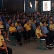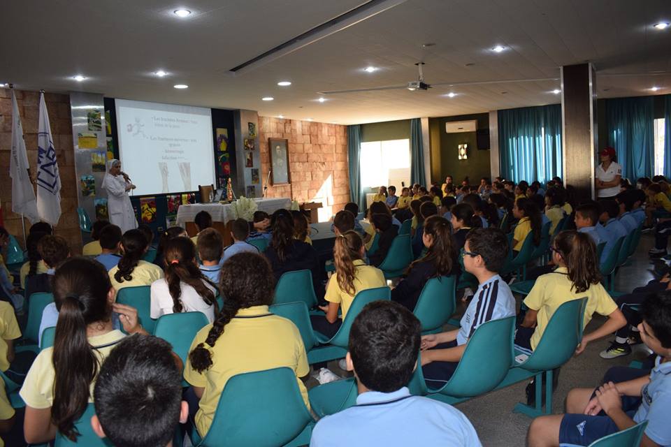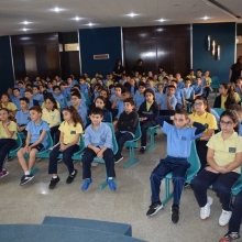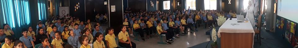 En direct de la salle bleue avec tous les élèves du cycle primaire II qui assistent à une conférence