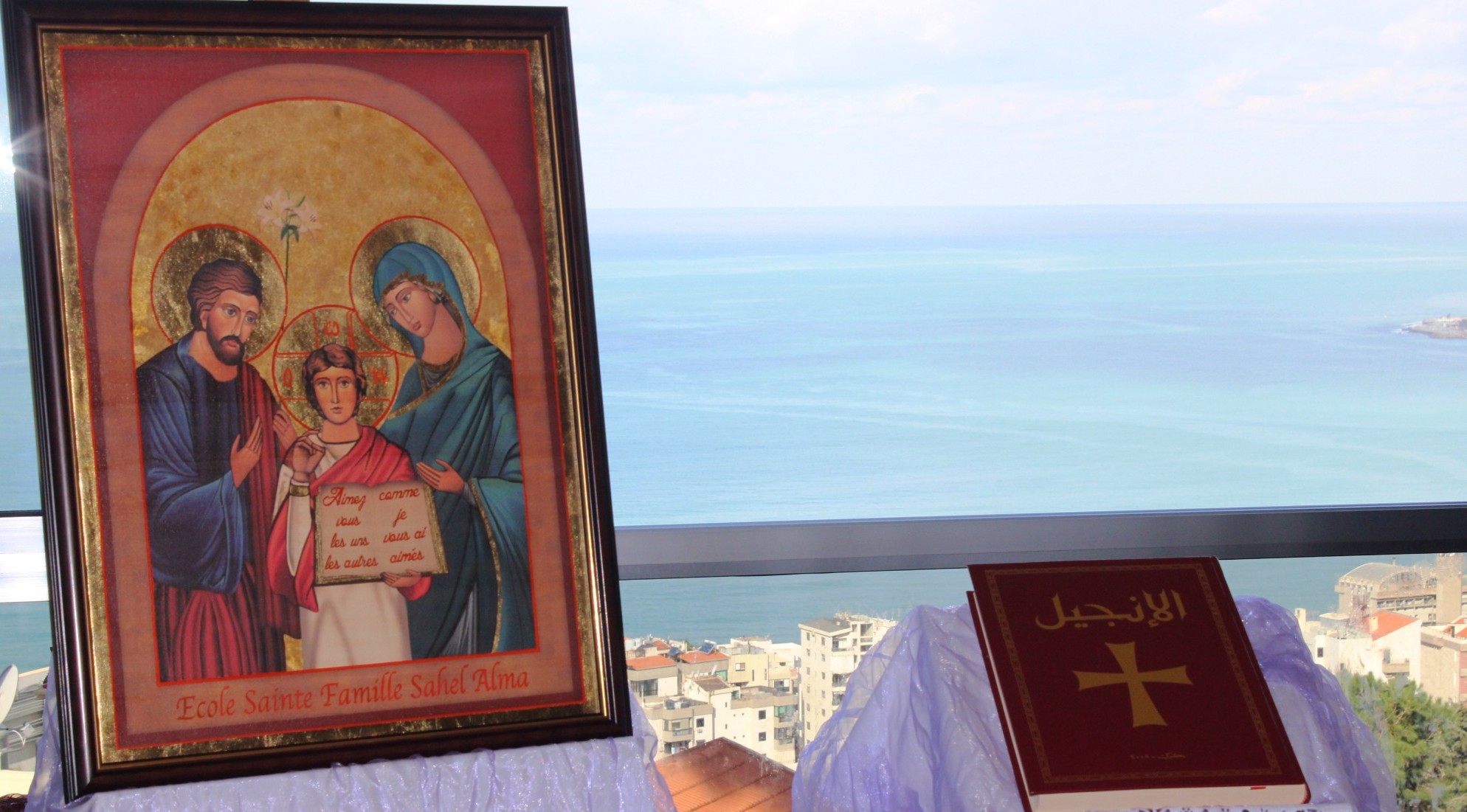 Dans la lignée du Synode de la famille et suite à l'appel adressé par le Pape François pourque la parole de Dieu devienne source de vieet de spiritualité pour la famille, son Excellence Révérendissime Monseigneur Gabrieli Caccia, Nonce Apostolique au Liban, bénit l'Icône de la Sainte Famille avec l'Évangile qui vont circuler dans les maisons des par